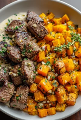 Herzhafte Butternut-Kürbis Knoblauch Kräuter Steak-Bowls